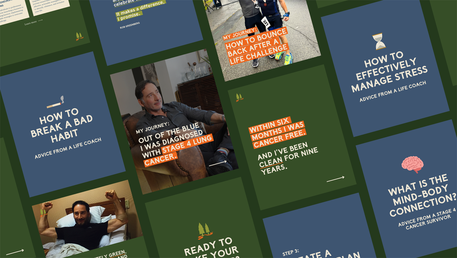 Rob Greenberg’s life coaching brand, The Evergreen Path, presented a rare challenge: to translate a deeply personal life journey into a visual identity that communicates both the business and wellness aspects of his coaching service. As an entrepreneur turned public company officer, father, and Stage 4 lung cancer survivor, Rob embodies strength and authenticity. To launch his new venture, Rob required a brand identity that felt unmistakably his, one that could carry the weight of his story while projecting trust, credibility, and warmth to those seeking guidance.